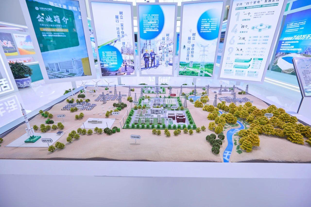 在展区中硬核科技扑面而来。阿拉善“源网荷储”沙盘前总围着不少人,这个能实现全国首例纯新能源黑启动的系统,让人直观感受到新型电力系统的魅力。